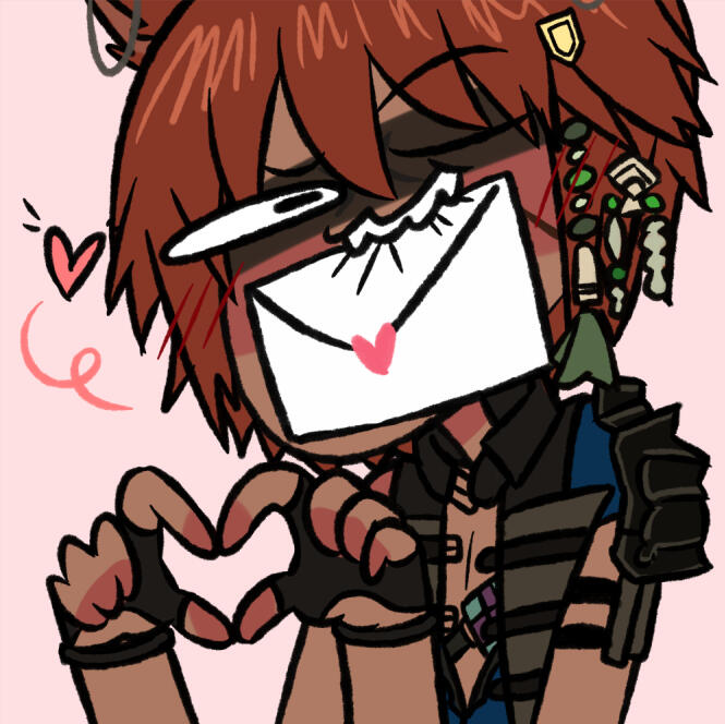 Starting with the top, he has short, red scruffy hair with black undertones. The black mask that covers his eyes does nothing but accentuate those bright emerald eyes. He has a tanned, strong body that stays fit from his constant traveling with arms that are perfect for long cuddles.
